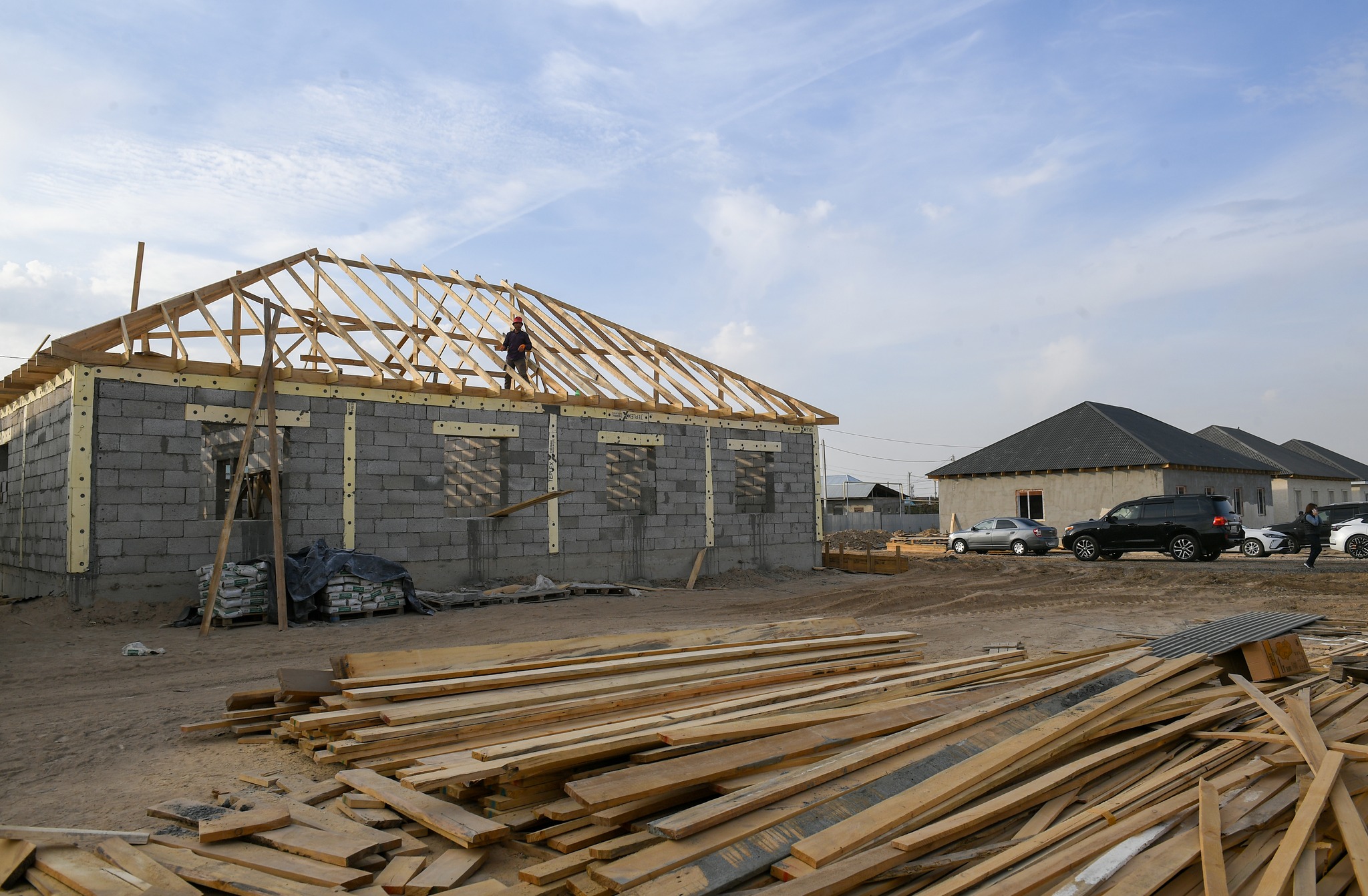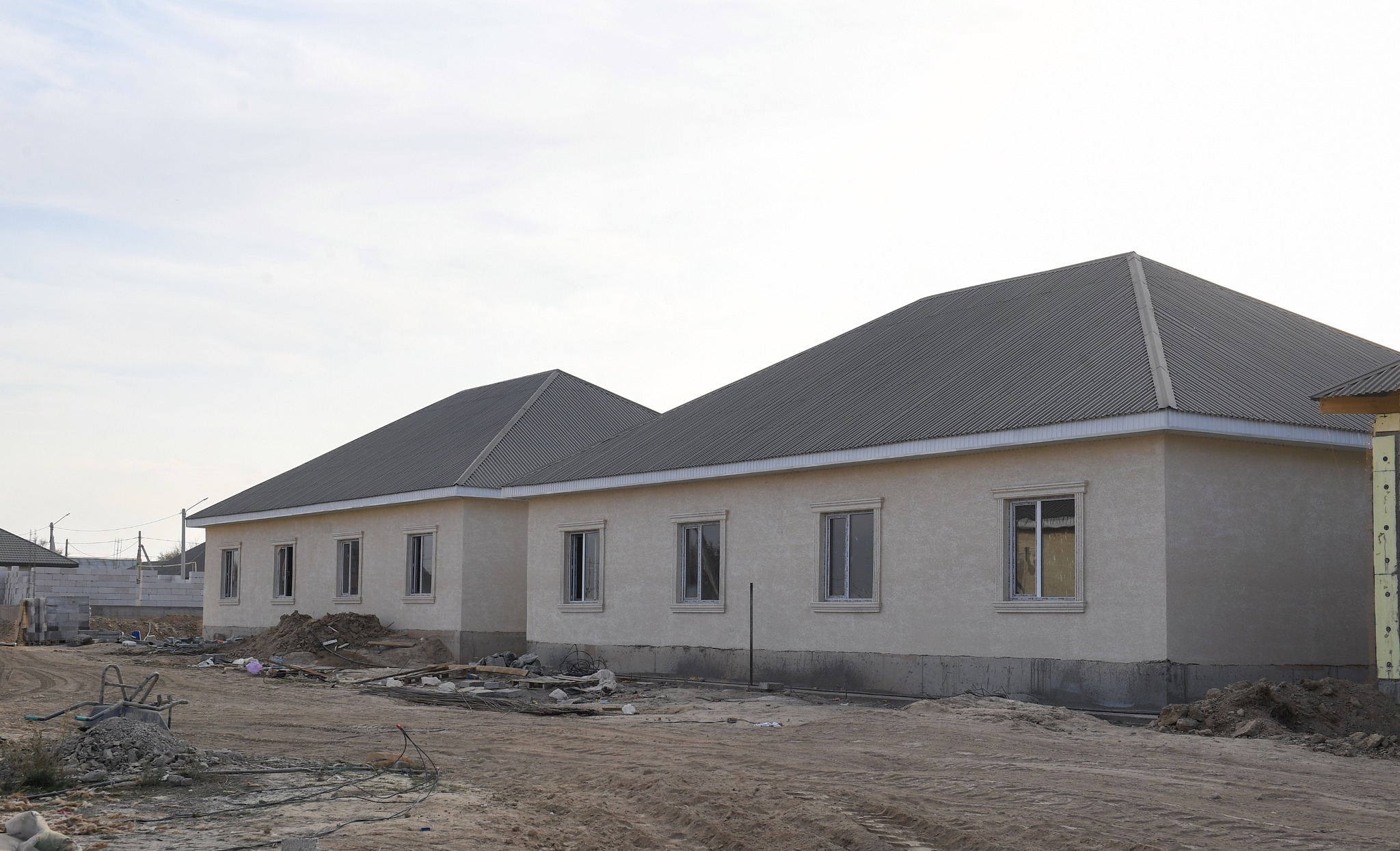 Далее глава региона осмотрел строящиеся для представителей социально уязвимых слоев населения жилые дома на два хозяина в селе Караой. Проект, начатый в июне этого года, предусматривает возведение 114 домов за счет частного инвестора. Каждый дом рассчитан на две четырехкомнатные квартиры с отдельными участками по четыре сотки.