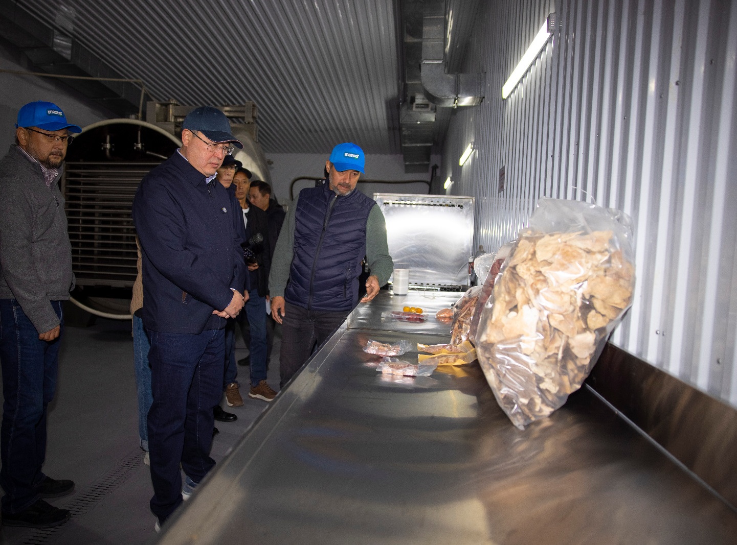 Затем делегация отправилась в село Койшыбек Енбекшиказахского района, где работает завод Asia Pets, выпускающий корма для домашних животных под брендом Mascot. На предприятии занято 25 человек. Производство основано на переработке мясных отходов с применением немецкой технологии сушки, позволяющей сохранять полезные свойства продукта.