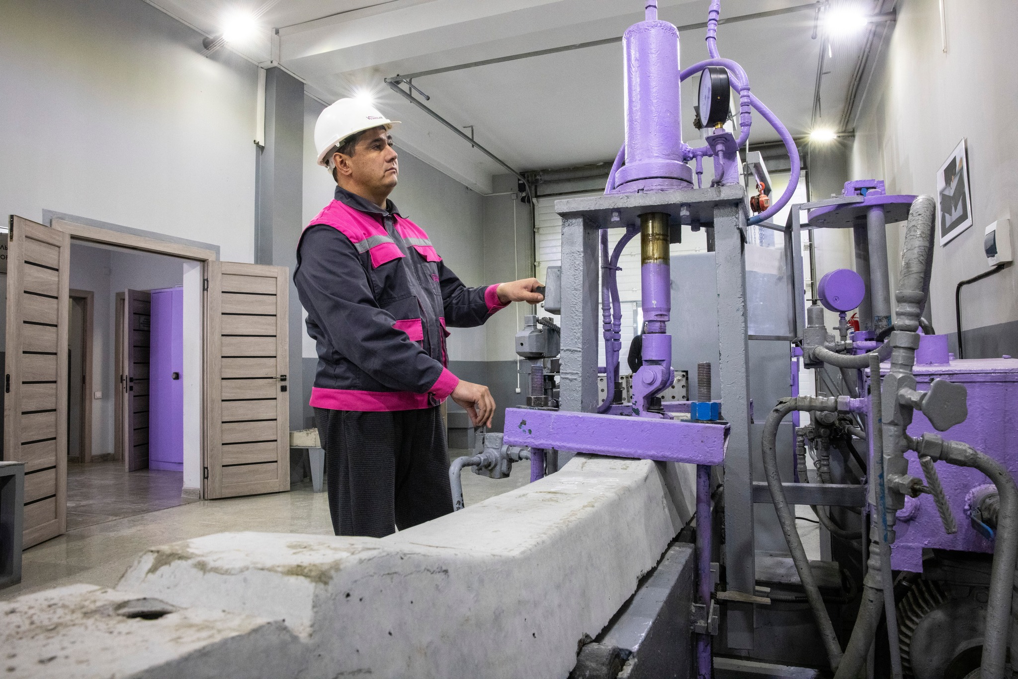 Следующим пунктом посещения стало производство железобетонных шпал. На каждом участке тут выполняются разные процессы.