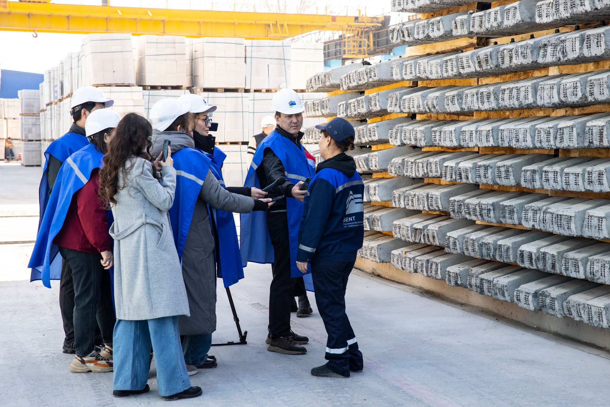 Первым на производственной площадке мы посетили цех по изготовлению автоклавных газоблоков. Здесь исполнительный директор «Автоклав KZ» Шамиль Сонуров подробно рассказал о технологии: от замешивания смеси до отгрузки газоблоков.