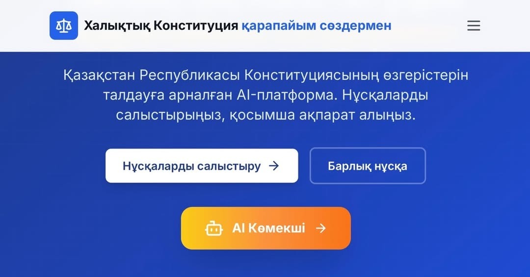 Елімізде «Халықтық Конституция қарапайым сөздермен» деп аталатын цифрлық платформа іске қосылды. Жобаны «AMANAT» партиясы фракциясының мүшесі, Мәжіліс депутаты Әбутәліп Мүтәлі таныстырды. Бұл – Қазақстан Республикасы Конституциясындағы өзгерістерді түсінуге және негізгі заңның әртүрлі редакцияларын салыстыруға көмектесетін чат-боты бар AI-сервис.
