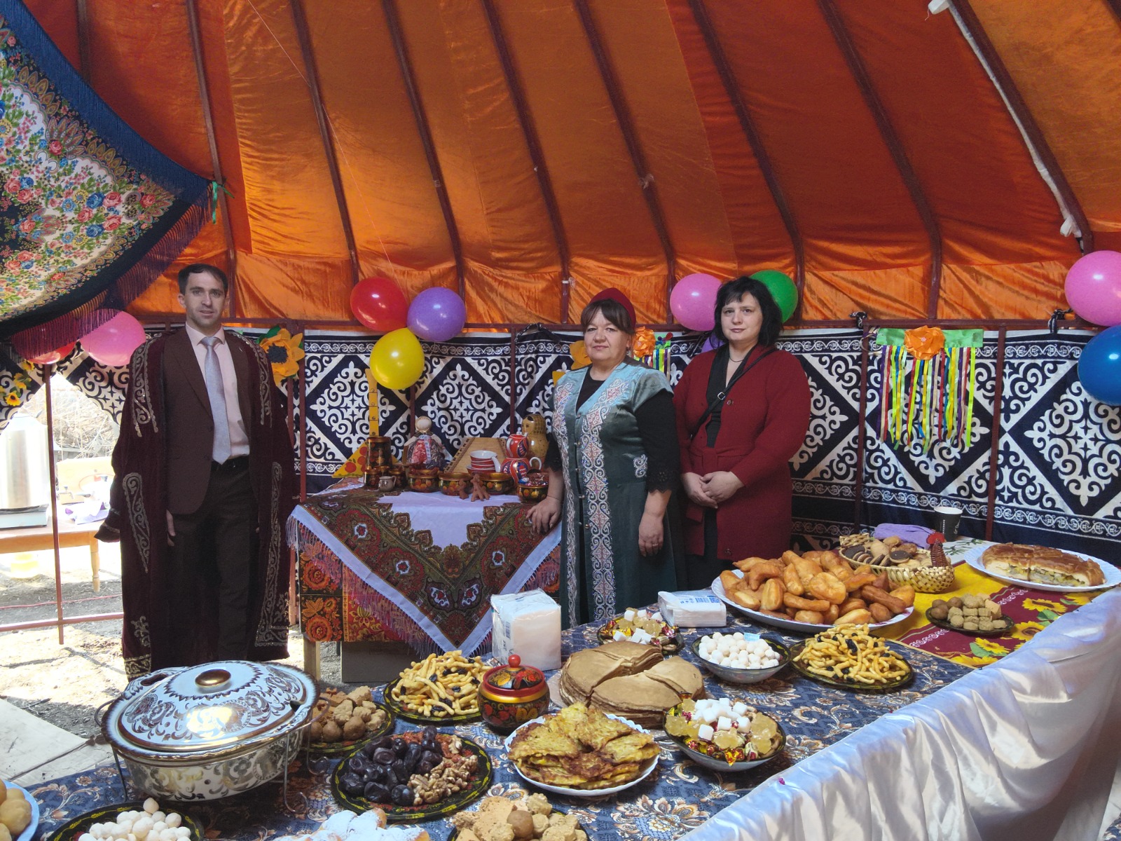 Всего было установлено 16 казахских юрт, где представители разных этносов совместно готовили традиционное наурыз-коже. Особую атмосферу праздника создавали сами жители. В одной из юрт за богатым дастарханом аксакал Мурат Мыкышев дал бата, благословив собравшихся и поздравив всех с Наурызом, пожелав мира, достатка и единства каждой семье.