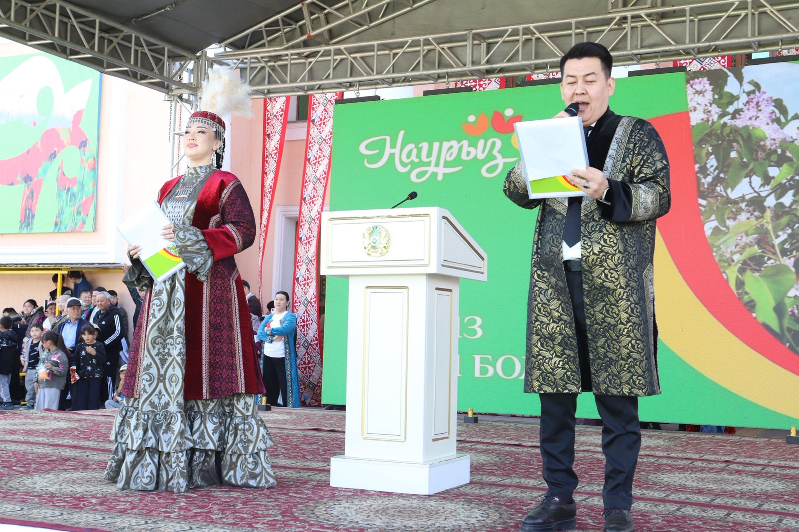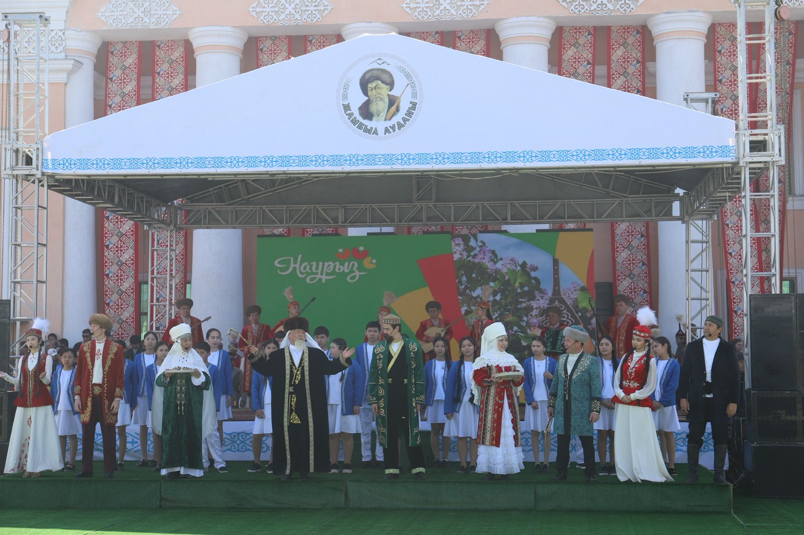 Перед жителями района выступил заместитель акима Алматинской области Гани Майлыбаев. Он поздравил сельчан с Жыл басы и зачитал поздравительное письмо акима Алматинской области Марата Султангазиева, наградив благодарственными письмами ряд лидеров общественного мнения, депутатов районного маслихата, работников различных отделов районного акимата, принявших активное участие в организации прошедшего референдума по принятию новой Конституции. Земляков поздравил с Наурызом аким Жамбылского района Нурлан Ертас, который кратко рассказал жителям о достижениях региона за прошедший год.