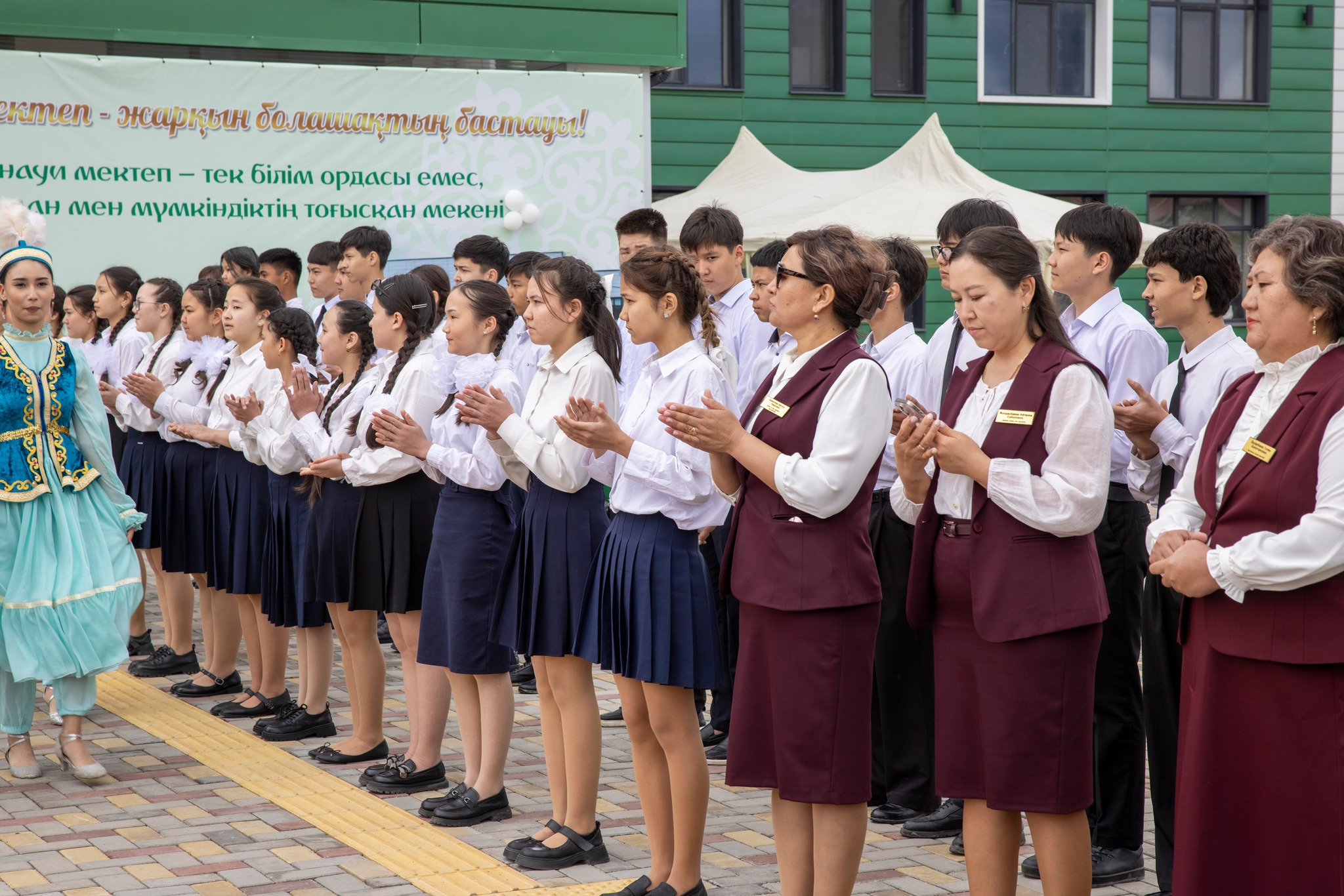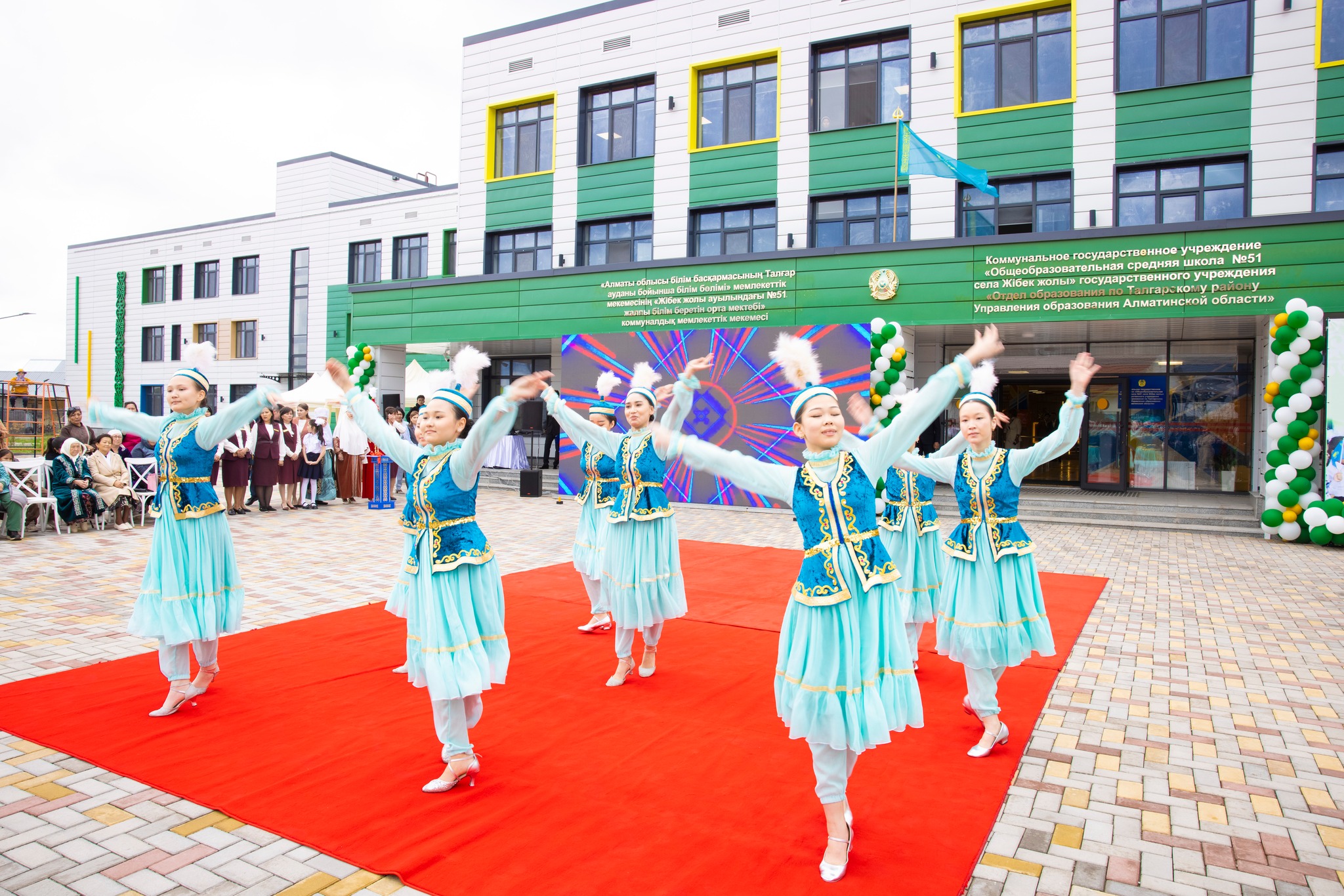 В селе Жибек жолы собрались представители областного и районного акиматов, руководители образовательной сферы, представители строительных компаний, ветераны педагогического труда, родители, будущие ученики и местные жители.