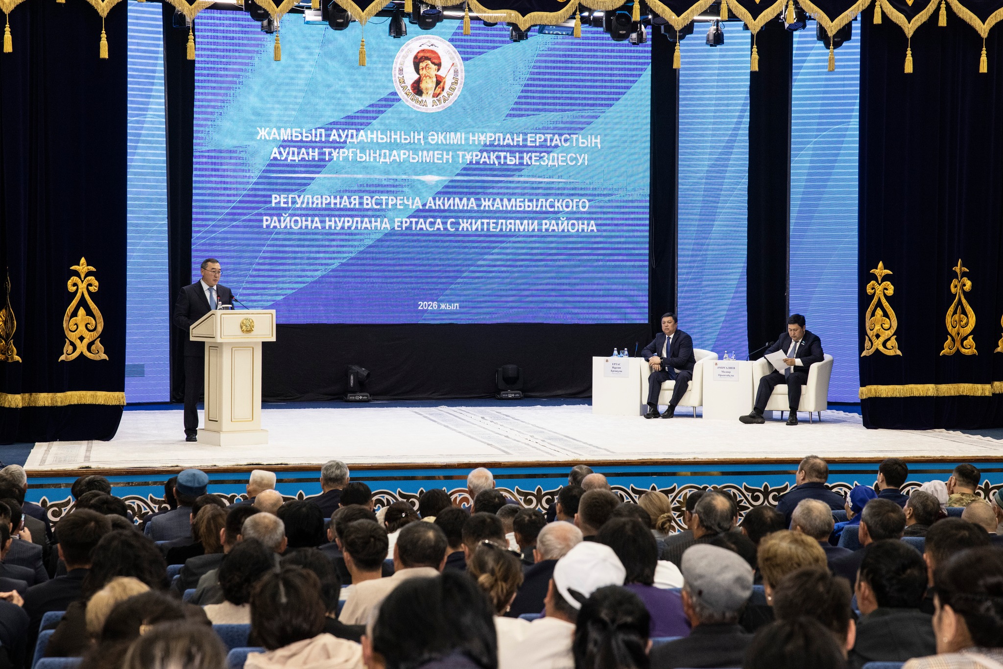 Следующая точка - районный центр. В Доме культуры Узынагаша прошла отчетная встреча акима района с жителями. Нурлан Ертас руководит районом почти пять лет, из них около трех - как всенародно избранный аким. И это, как он сам отметил, накладывает особую ответственность, ведь люди ждут реальных изменений.