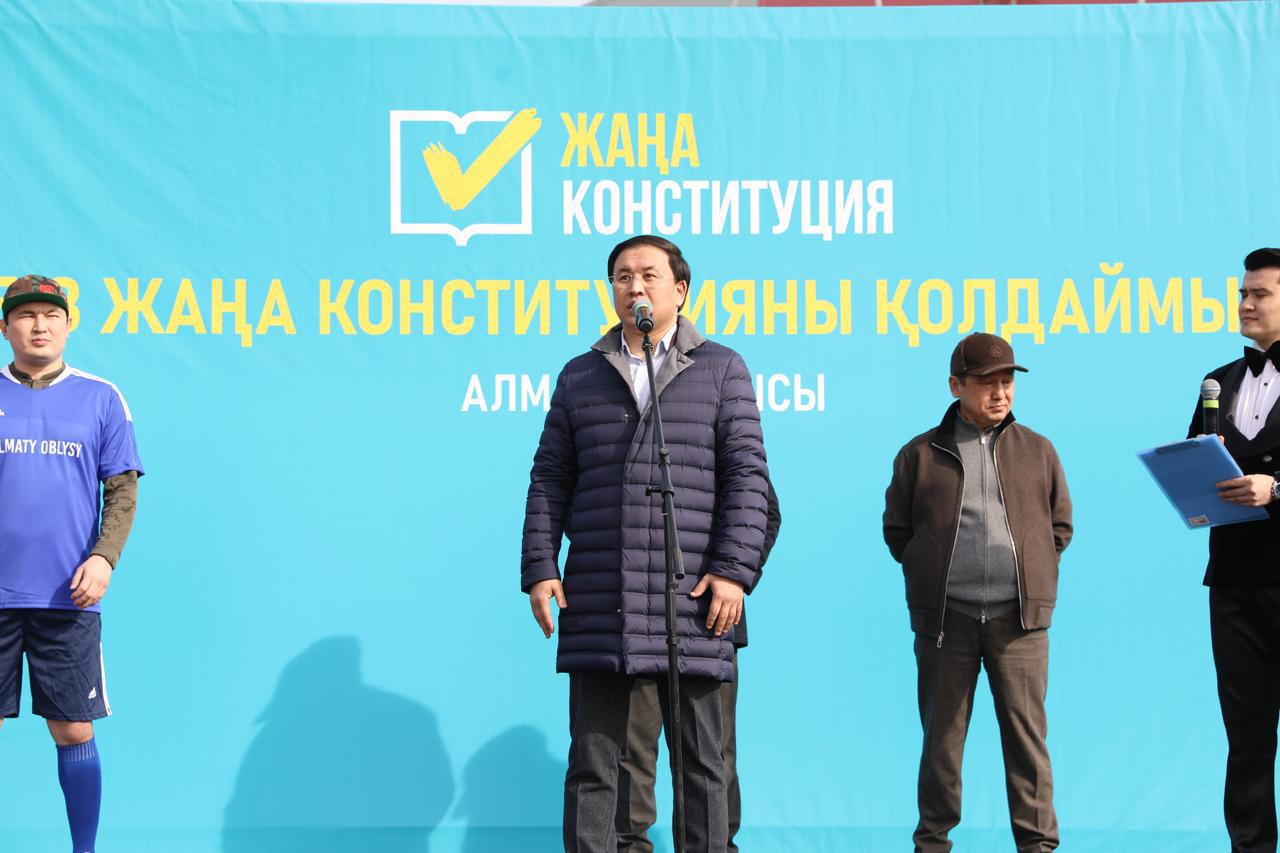 Қарасай ауданында спорт және эстрада жұлдыздарының қатысуымен ерекше футбол матчы өтті. Жасыл алаңда ел намысын әлемдік жарыстарда қорғап жүрген чемпиондар мен дарынымен дараланған өнер иелері бәсекеге түсті. Бұған дейін болмаған ерекше кездесуді тамашалау үшін стадионға 3000-нан астам жанкүйер жиналды.Шараның басты мақсаты – кімнің мықты екенін анықтау емес, көрерменге көтеріңкі көңіл-күй, жарқын эмоция сыйлау болды. Іс-шара «Біз жаңа Конституцияны қолдаймыз» ұранымен «Әділетті әрі прогрессивті Қазақстанның Халық Конституциясы үшін» өңірлік жалпыұлттық коалицияның қолдауымен ұйымдастырылды.«К...