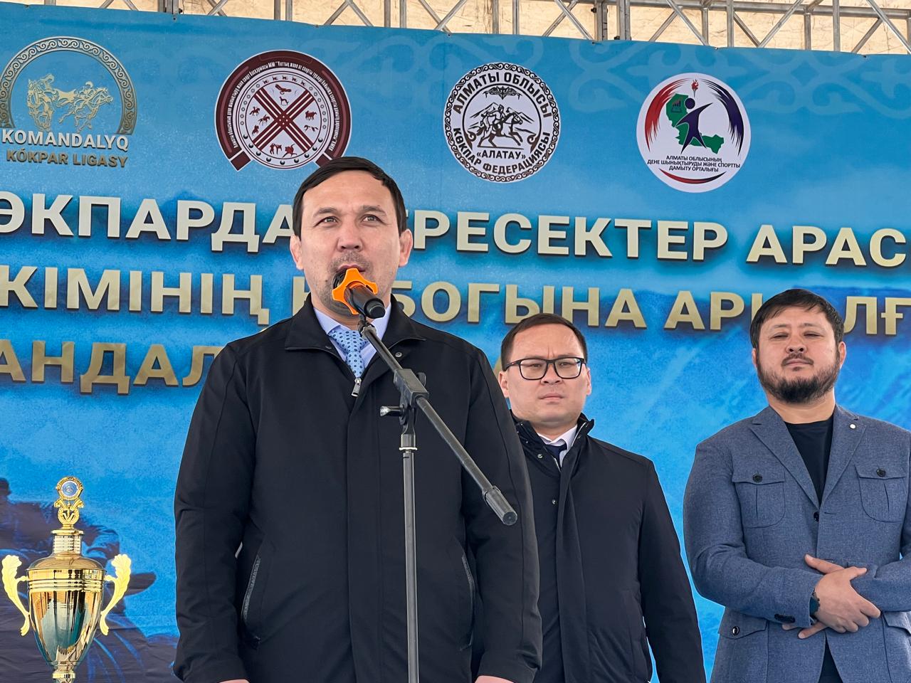 «Кокпар - не просто национальный вид спорта. Это часть нашей истории, символ мужества, ловкости и единства. Сегодня на Карасайской земле собрались сильнейшие игроки, чтобы показать своё мастерство, волю к победе и уважение к спортивным традициям нашего народа. Думаю, что нынешний турнир подарит зрителям незабываемые эмоции, а участникам - честную борьбу, новые достижения и укрепление дружбы между районами. Такие соревнования способствуют развитию массового спорта, популяризации национальных дисциплин и воспитанию молодёжи в духе патриотизма и здорового образа жизни. Желаю спортсменам удачи, красивой и честной игры, стойкости и энергии. Пусть победит сильнейший, а каждый участник унесёт с собой новый опыт и стремление к ещё более высоким результатам». – сказал Акжурек Танатаров.