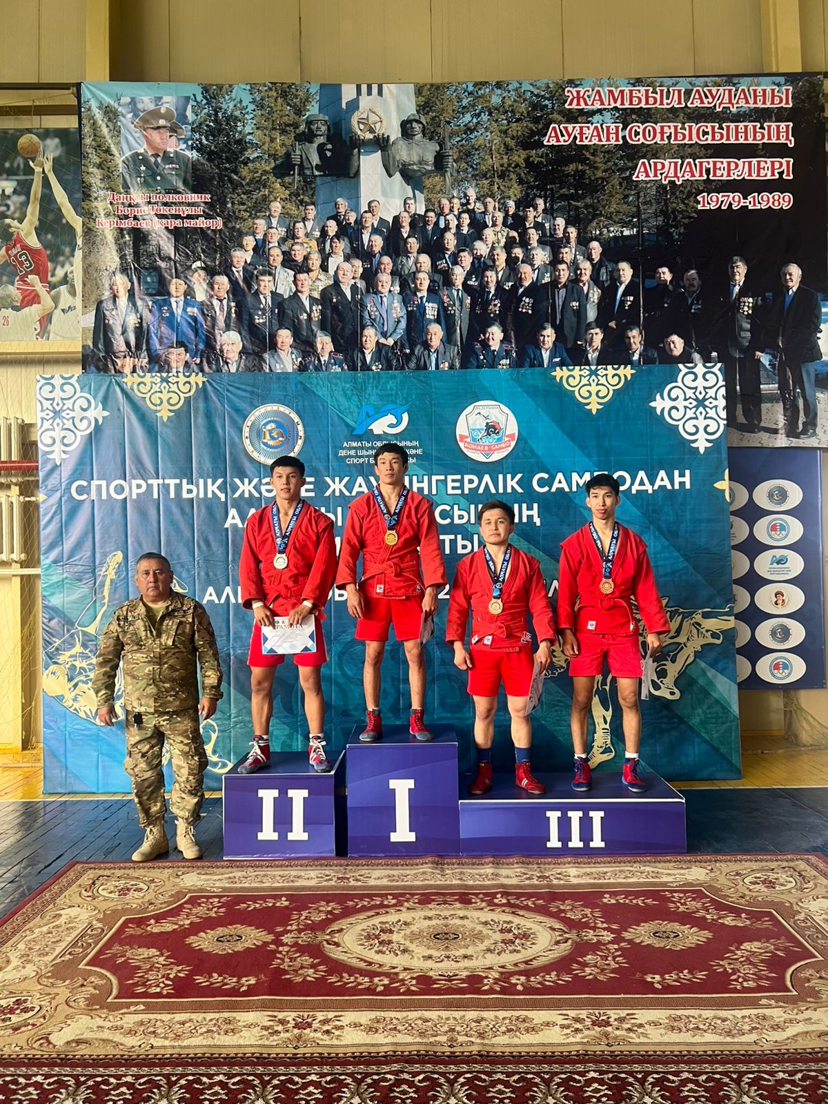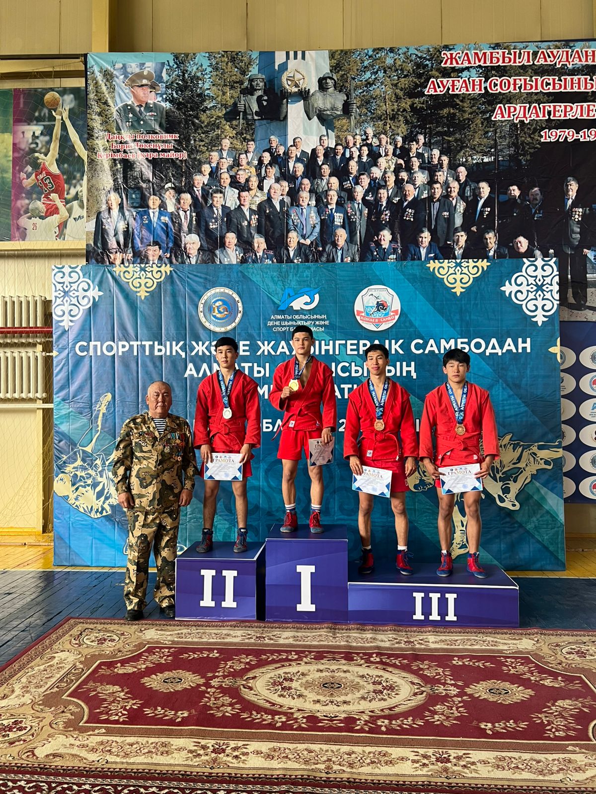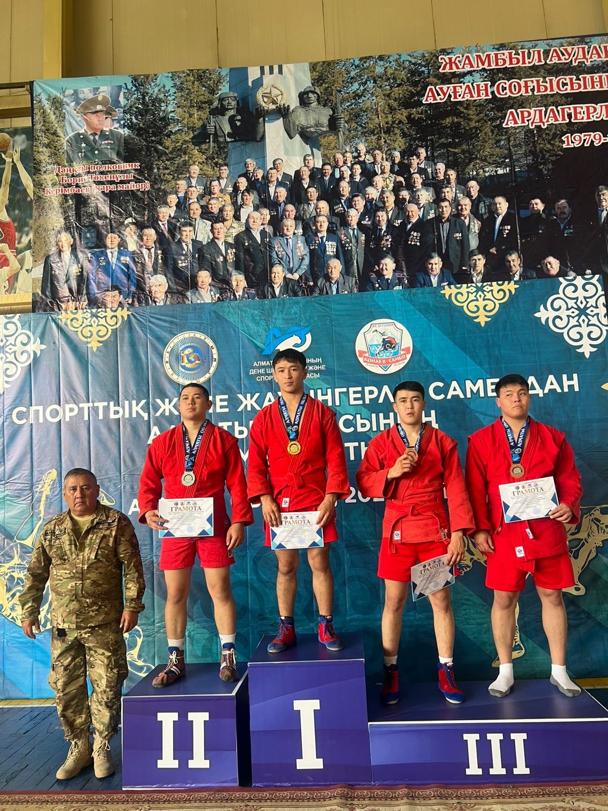 В Жамбылском районе прошел чемпионат Алматинской области по спортивному и боевому самбо, посвященный памяти легендарного офицера, полковника Бориса Керимбаева, известного как «Қара майор» - одного из самых авторитетных командиров периода Афганской войны, чье имя стало символом мужества, военной выучки и безупречной дисциплины.