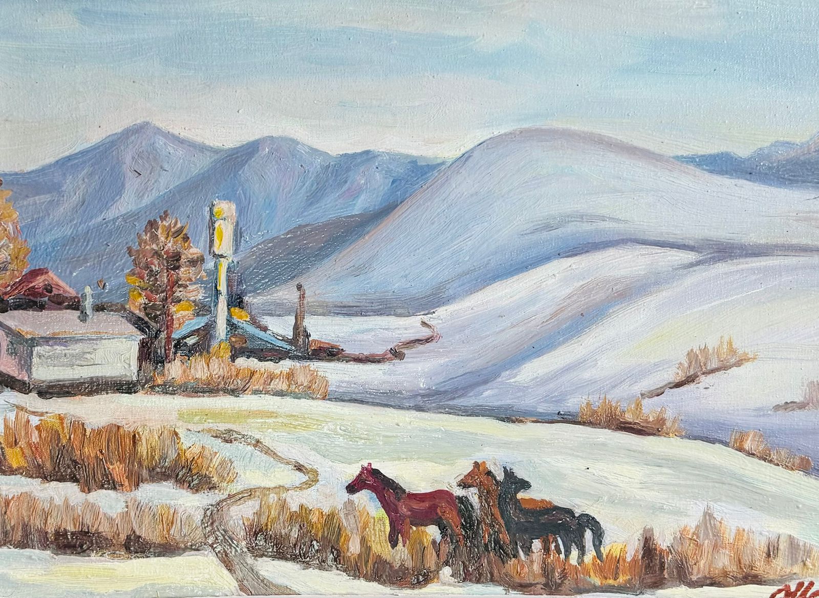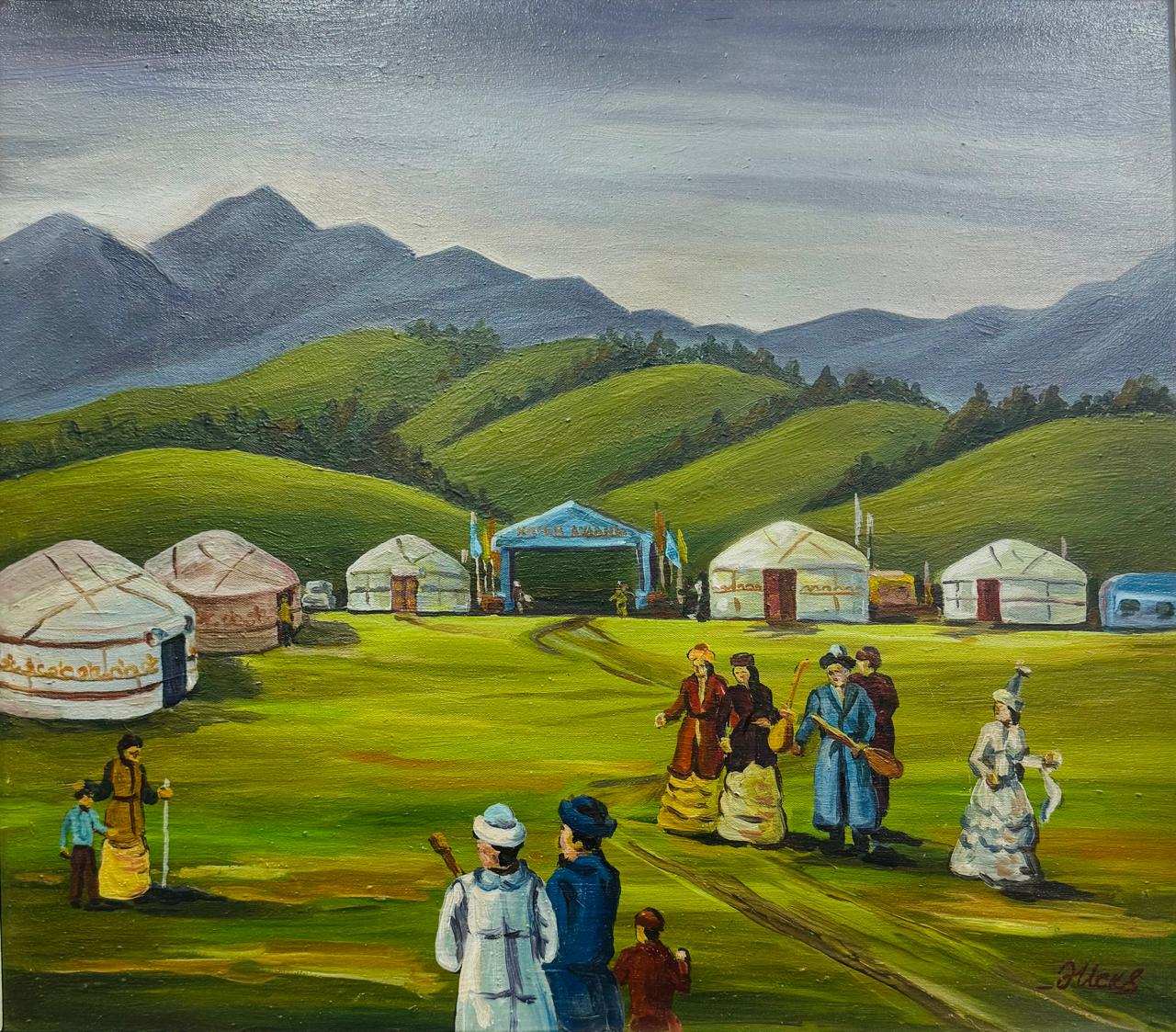 Мастер неоднократно изображал старый дом Умбетали, родной дворик, колодец, откуда пил воду великий акын, женщин у кипящего казана. Эти картины Ауелбека – символ уюта и ностальгия по далекому детству.