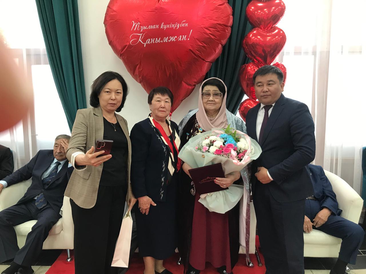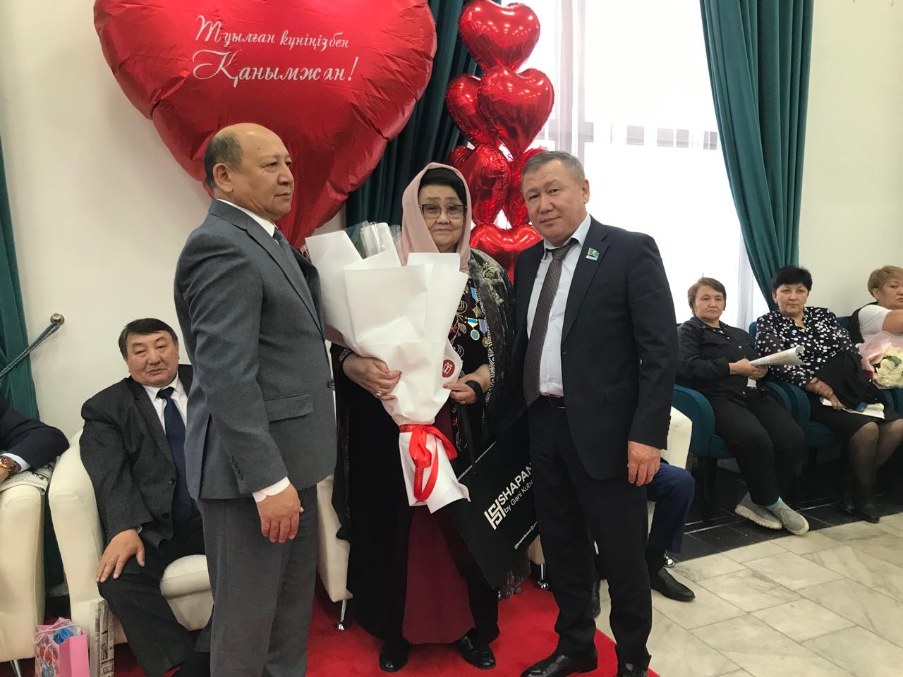 С поздравлениями также выступили председатель Сената Парламента Республики Казахстан Маулен Ашимбаев и сенатор Жанболат Жоргенбаев. В этот вечер юбилярше вручили грамоты, цветы, памятные подарки, а также звание Почетного ветерана Алматинской области.