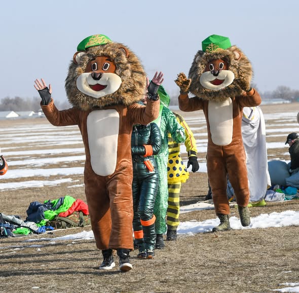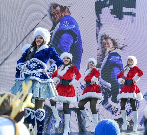 Сам праздник разворачивался как продуманный спектакль. По легенде, Снегурочка уже прилетела на парашюте, но... заблудилась. Зрители вместе с ведущим искали ее, отгадывали «волшебный код», участвовали в интерактивных играх. А на сцене тем временем закружился танец Снегурочек - легкий, снежный, плавно подводящий к первому по-настоящему запоминающемуся моменту дня. В небе появился самолет Ан‑2 и из него по одному стали выпрыгивать парашютисты - настоящие герои новогодней фантазии: Супермен, Бэтмен, Гринч – похититель Рождества, Лев и другие персонажи сказок и фильмов. Среди них был и парашютист-инструктор аэроклуба ОО «Отан» Вячеслав Джейранов - в костюме Змеи, символа уходящего года.