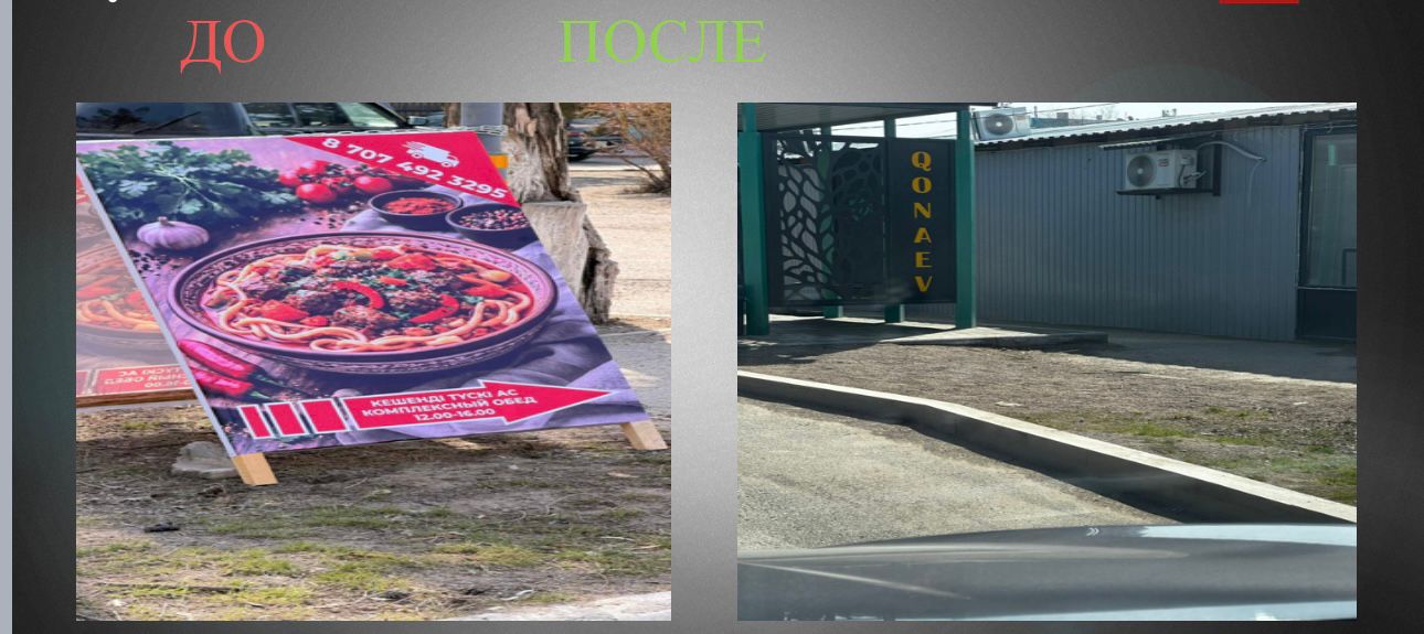 По его словам, в целях улучшения архитектурного облика города ведётся системная работа по нескольким направлениям. В частности, по итогам проведённого мониторинга в городе Қонаев демонтированы 25 незаконно установленных рекламных конструкций.
