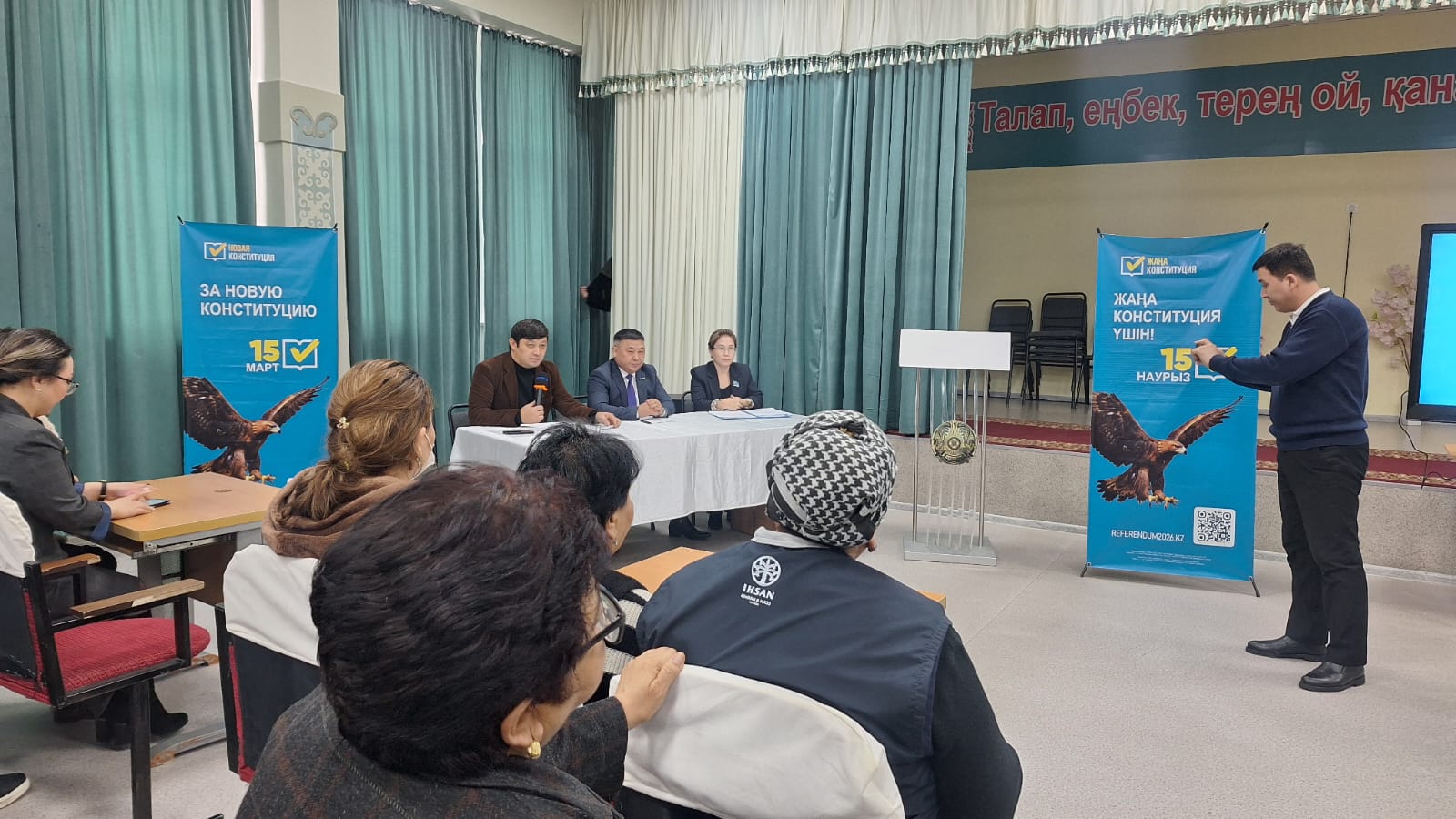 «Әділетті және Прогрессивті Қазақстанның Халықтық Конституциясы үшін!» Жалпыұлттық коалициясының мүшелері Қаскелең қаласындағы «Қоғамдық келісім және даму орталығы» еңбек ұжымымен кездесу өткізді.Кездесуде коалиция өкілдері 2026 жылғы 15 наурыздағы республикалық референдумға шығарылған жаңа Конституция жобасының негізгі ерекшеліктерін баяндады. Атап айтқанда, адамның ең жоғары құндылық ретінде бекітілуі, әлеуметтік кепілдіктердің толық сақталуы, еңбек құқықтарының қорғалуы, цифрлық қауіпсіздік, дәстүрлі отбасы құндылықтарын нығайту және жердің халыққа тиесілі екендігі.«Жаңа Конституция – тұра...