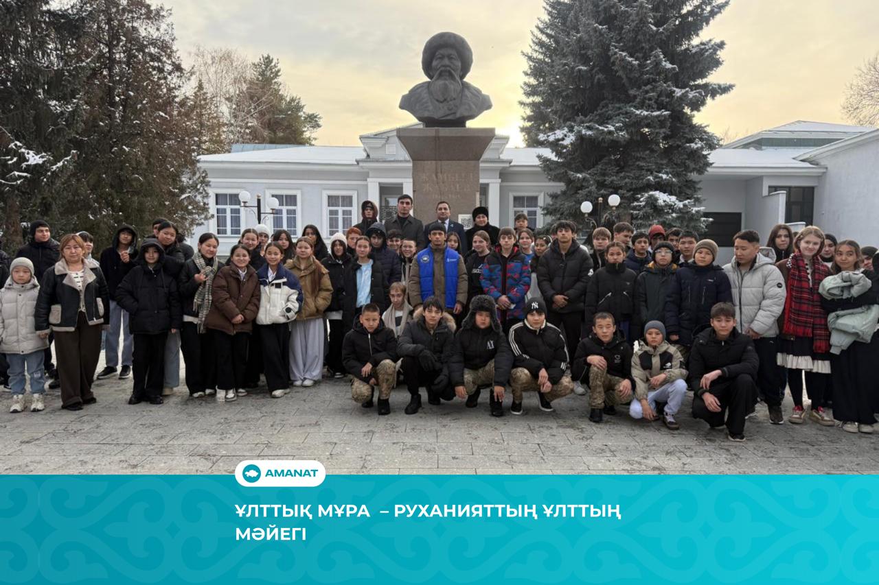 Жаһандану дәуірінде ұлттың өз болмысын, төлтума табиғаты мен дәстүрінің қаймағын бұзбай сақтап отыруы оңай емес. «AMANAT» партиясы тарихымызды дәріптеу, руханиятымызды жаңғырту бағытындағы бастамаларды жүзеге асыруда. Бұл – біздің ұлтымыздың, халқымыздың алдындағы перзенттік парызымыз болып табылады.Осы мақсатта, «AMANAT» партиясының Іле аудандық филиалының ұйымдастыруымен кешенді шаралар жүзеге асуда. Соның бірі «Ұлттық мұра» партиялық жобасы аясында Ащыбұлақ ауылдық округінің №19 орта мектептің жоғарғы сынып оқушыларын, өңіріміздегі тарихи орын саналатын Жамбыл Жабаевтың әдеби-мемориалдық мұ...