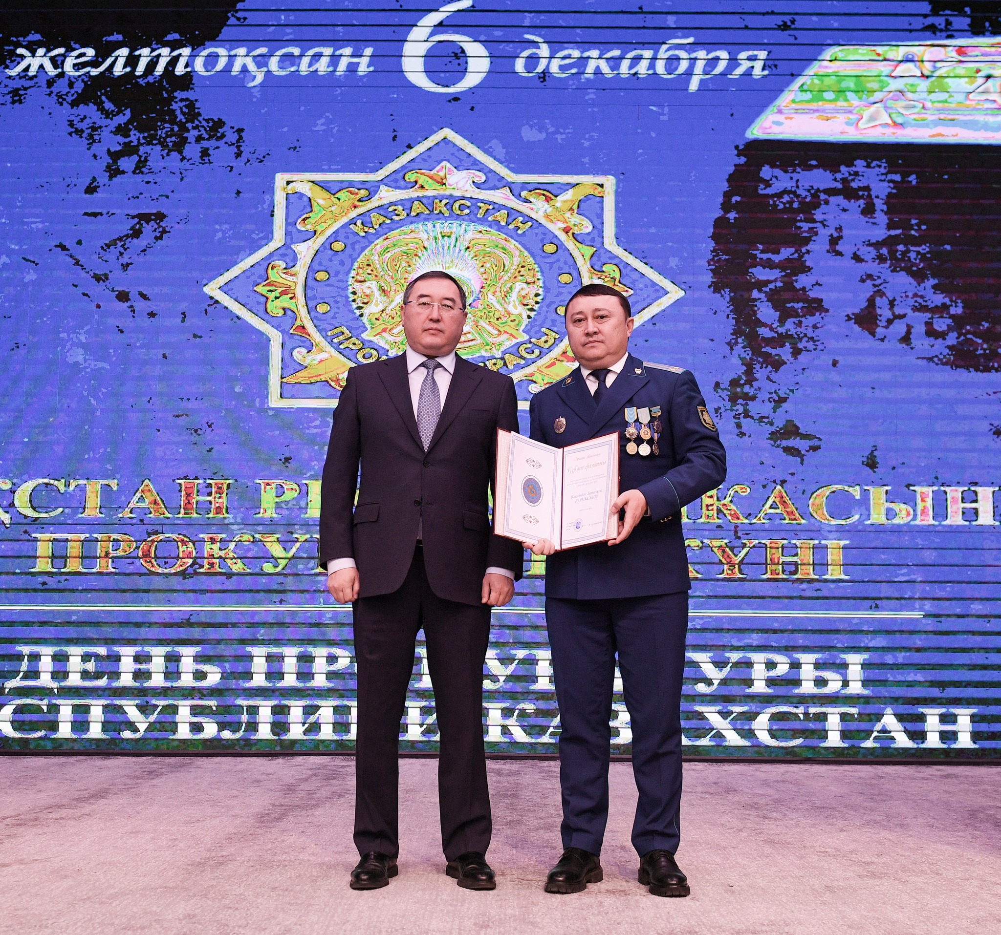 Торжественное собрание в честь Дня прокуратуры Республики Казахстан объединило ветеранов и действующих сотрудников ведомства, представителей власти и общественности. Мероприятие включило в себя официальную часть, церемонию награждения и принятия присяги, а также праздничный концерт.После того, как прозвучал Государственный гимн, с приветственным словом к собравшимся обратился аким Алматинской области Марат Султангазиев. В своей речи он сделал акцент на фундаментальной роли прокуратуры в правовой системе страны. – Глава государства Касым-Жомарт Токаев отметил: «Верховенство закона – главный гар...