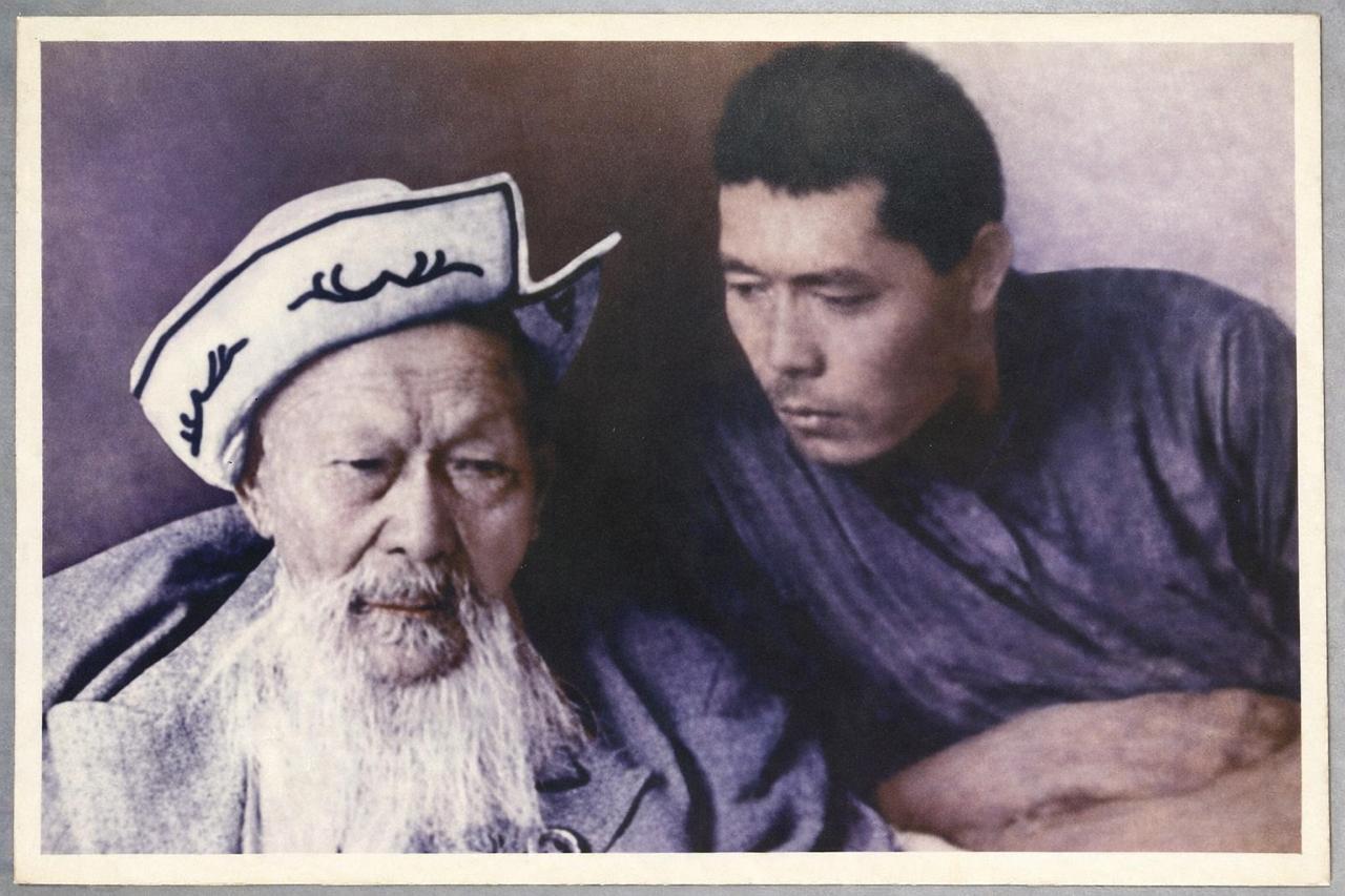 «В тот год, когда я начала собирать экспонаты для литературно-мемориального музея Умбетали Карибаева, узнала, что старая фотография с акынами хранится у одной моей старой знакомой. Побывала у нее в гостях, и она показала мне тот уникальный снимок, датируемый 1943 годом. А сделан он был в ауле известного поэта Умбетали Карибаева. В тот год на фронте погиб его младший брат, и к нему домой, чтобы выразить соболезнование, приехали Жамбыл Жабаев, Кенен Азербаев и другие. На этом снимке на скамейке сидят знаменитые акыны и председатель сельсовета, а за ними стоят односельчане, среди которых та женщина, что сохранила исторический снимок (см. фото выше). Разглядывая старую фотографию, заметила среди стоящих и молодого отца Салтанат - Тезекбая Жамбылова. Я тогда подробно расспросила обо всех, кто был изображен на этом снимке.