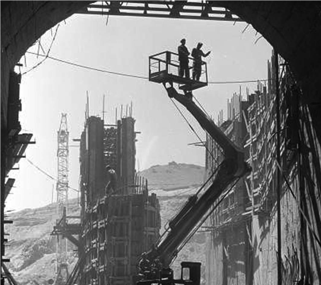 Параллельно шли и другие работы: на лотковой части будущей плотины использовали естественную каменную гряду - два километра длиной, до шестидесяти метров шириной. Ее прикрыли вспомогательной перемычкой, подняли уровень воды, чтобы она пошла через четыре тоннеля к зданию ГЭС. На правом берегу росла насыпная плотина - редкое для гидростроительства решение: специальный раствор подавали насосами прямо в тело дамбы.