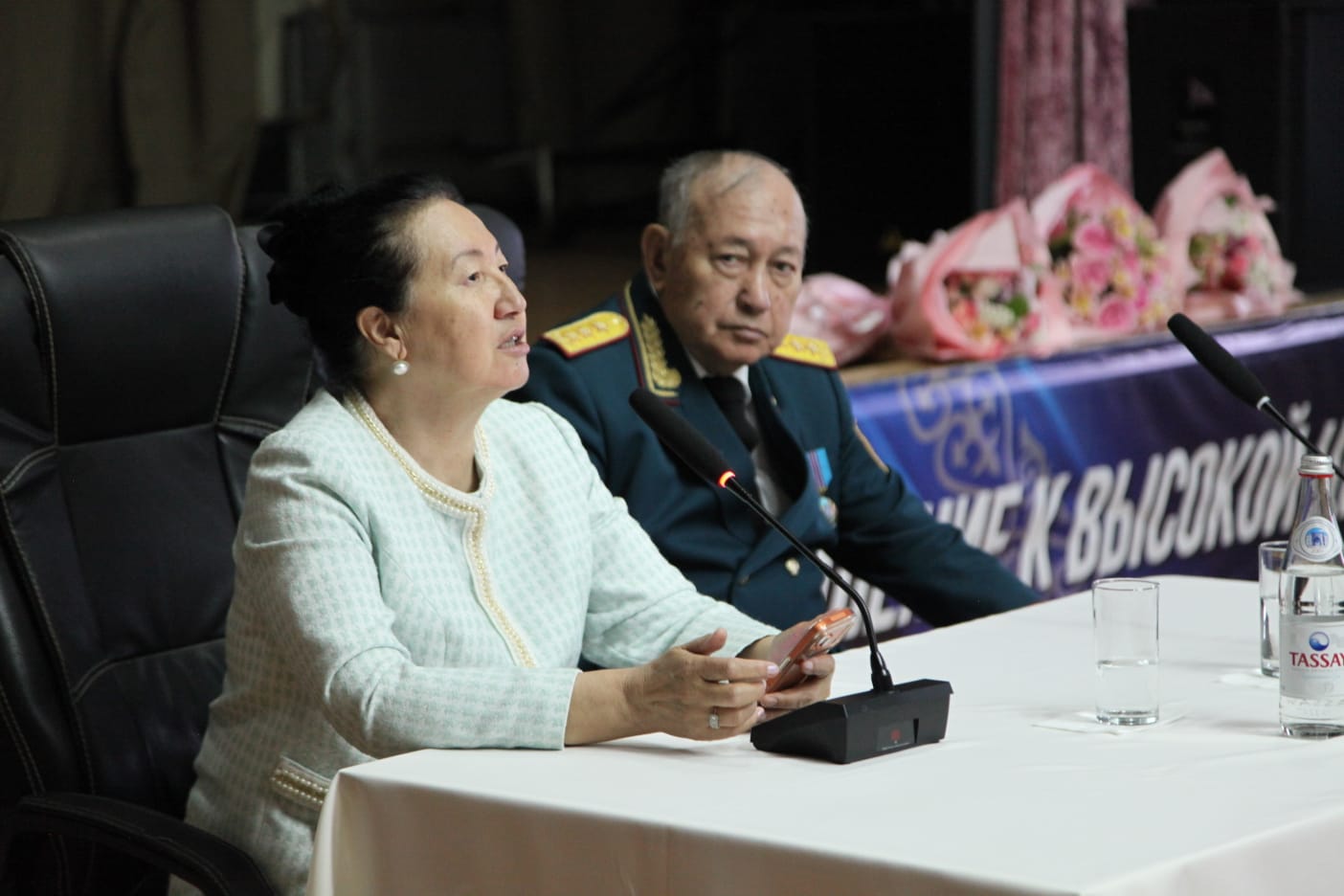 Сам торжественный вечер «Книга – духовная опора нации», организованный управлением воспитательной, идеологической и кадровой работы совместно с филиалом РОО «Застава тарландары», прошел в удивительно теплой, почти семейной обстановке. Ведущая Салтанат Бигабылова представила собравшимся почетных гостей, среди которых был легендарный человек – Халық Қаһарманы, генерал-полковник Сат Токпакбаев, автор мемуаров «Жаным садаға».