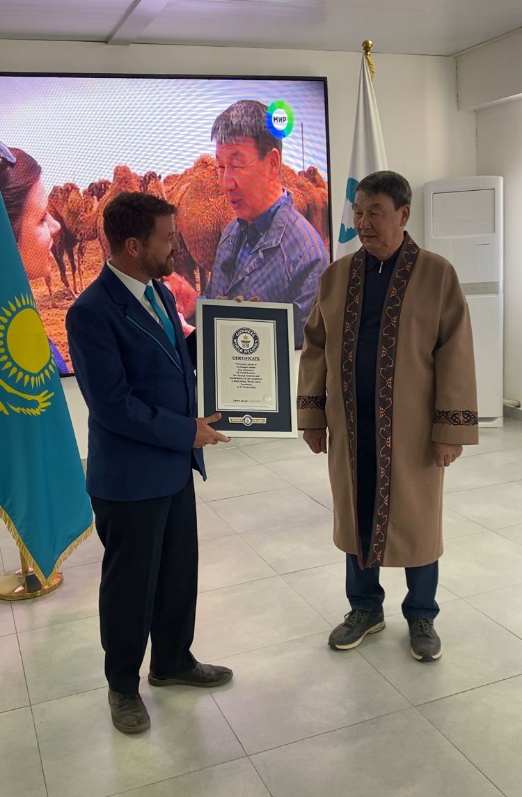 Рекорд подтверждён: караван из тысячи верблюдов в Алматинской области официально вошёл в Книгу рекордов Гиннесса.Караван из тысячи одногорбых верблюдов, прошедший один километр в селе Курты Илийского района 20 сентября, официально вошёл в Книгу рекордов Гиннесса как самый большой в мире.Сертификат о мировом достижении вручил представитель Книги рекордов Гиннесса Ричард-Уильям Стэннинг, отметив уникальность казахстанского рекорда:«Это особенный случай. В других странах обычно собирают животных от разных владельцев — у одного человека, например, четыре верблюда, у другого два. А здесь весь карав...