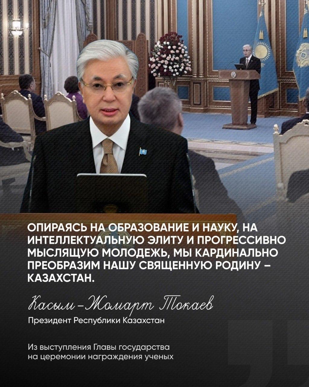 Выступая на церемонии награждения ученых Глава государства напомнил, что формирование интеллектуальной и просвещенной молодежи – это общая ответственность государства и родителей. Поддержка науки и уважение к ученым формируют в обществе ценности трудолюбия, стремления к знаниям и созидательного мышления, что напрямую влияет на интерес молодого поколения к образованию и развитию.В этом контексте особое значение имеет создание условий для доступа к качественному образованию. В частности, внедрение накопительной системы «Келешек» уже позволяет родителям заранее инвестировать в будущее своих детей...