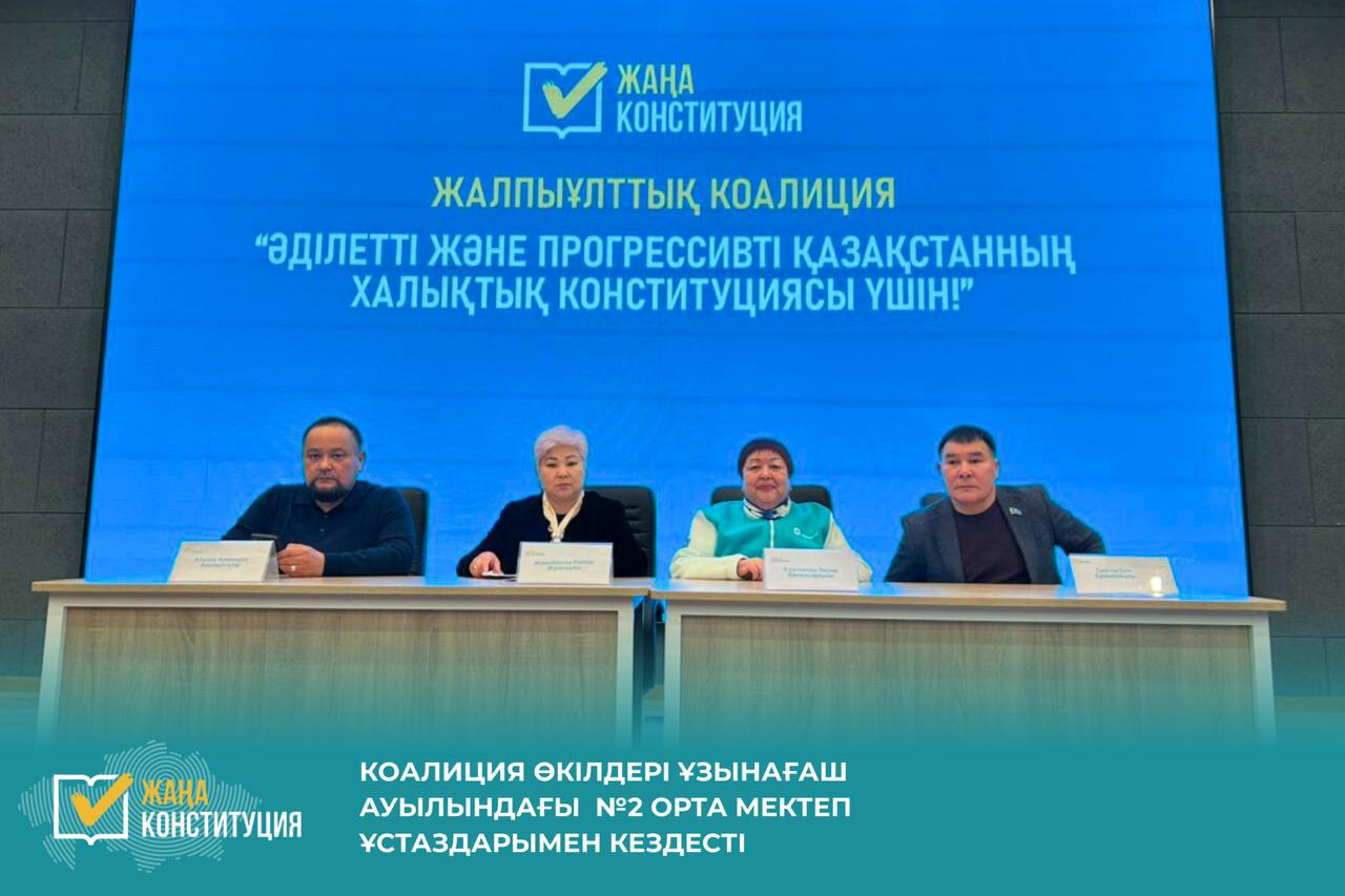 «Әділетті және Прогрессивті Қазақстанның Халықтық Конституциясы үшін!» коалициясының мүшелері Өтеген батыр ауылындағы «Энергосбыт» еңбек ұжымымен кездесіп, жаңа Конституция жобасын талқылады.Кездесу барысында коалиция мүшелері жаңа Ата Заңның негізгі ерекшеліктері – адамды ең жоғары құндылық ретінде бекіту, әлеуметтік кепілдіктерді сақтау, еңбек құқықтарын қорғау, цифрлық қауіпсіздік, дәстүрлі отбасы құндылықтарын нығайту мәселелеріне тоқталды. Сондай-ақ билік тармақтарының теңгерімі, бір палаталы Парламент құру, Вице-Президент институтын енгізу сияқты саяси жаңашылдықтар туралы айтып берді.«Ж...