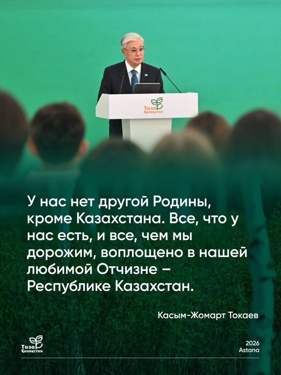 Касым-Жомарт Токаев выразил искреннюю признательность всем участникам движения «Таза Қазақстан», особо выделив роль молодёжи как главной движущей силы и опоры проекта.Президент отметил, что именно юные казахстанцы демонстрируют высокий уровень гражданской ответственности, активно участвуют в экологических акциях и вносят существенный вклад в общее дело. «Светлое будущее нашей страны в руках таких сильных духом, патриотично настроенных и целеустремлённых граждан, как вы», — заявил Глава государства.Он подчеркнул, что у нас нет другой Родины, кроме Казахстана, и главная суть проекта заключается...