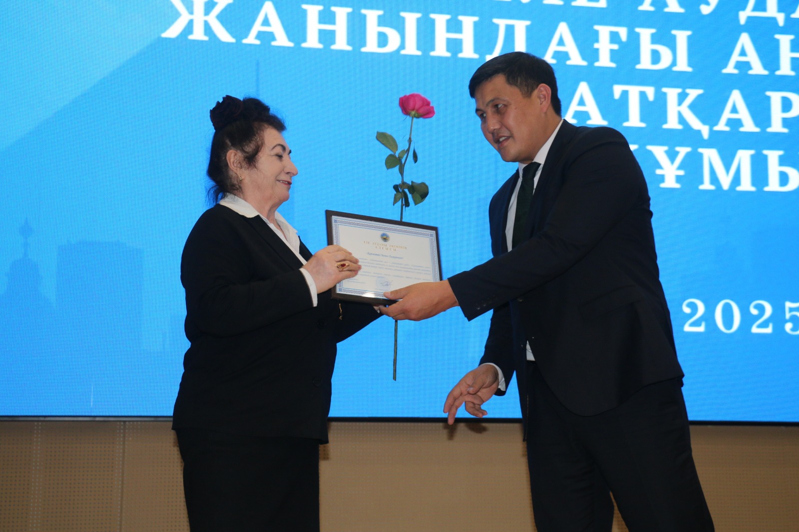 Значимое мероприятие продолжилось торжественной церемонией награждения. Заместитель акима района Куат Акчабаев тепло поздравил представителей Советов аксакалов и матерей, а также вручил грамоты и благодарственные письма жителям района, принимавшим активное участие в общественной деятельности. Были награждены и семьи, являющиеся примером крепости и верности. Максату Сейдалиеву была вручена юбилейная медаль «30 лет Ассамблее народа Казахстана», а Мейрамкуль Жабиевой – «Алғыс хат» от Министерства культуры и информации РК и грамота акима района. Мероприятие завершилось концертной программой.