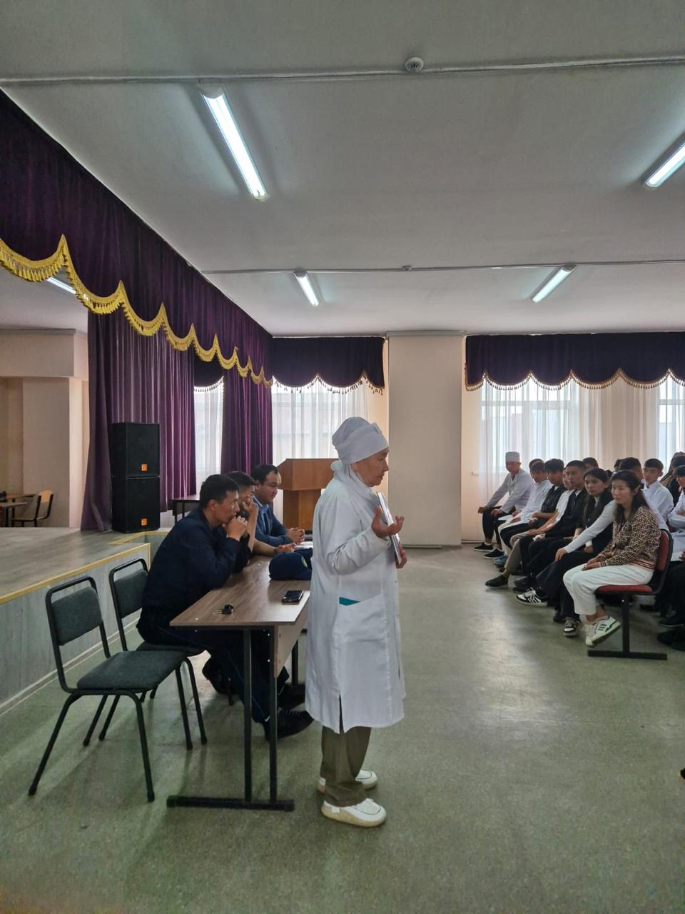 Обращаясь к молодежи, руководитель районного отдела политики Кайсар Аскарулы подчеркнул, что порядок и безопасность в обществе начинаются со знания закона.
