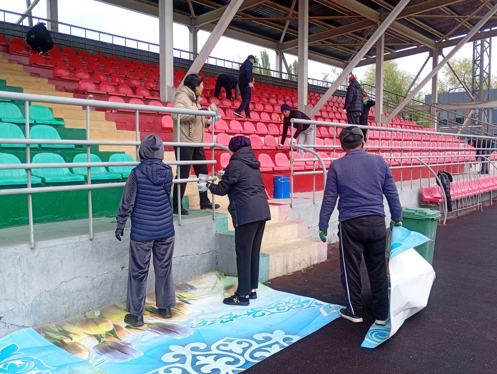 - В рамках акции на стадионе проводятся работы по его реставрации за счет спонсорских средств. Красим и приводим в порядок посадочные места, сейчас начнем белить. Дополнительно удобряем газон. Работы по приведению в порядок стадиона будут продолжены. Напомню, что 1 мая здесь стартует Чемпионат Илийского района по футболу. Каждую субботу в 18 часов будут проходить соревнования между округами, - сказал заместитель акима Илийского района Аскар Садыков.