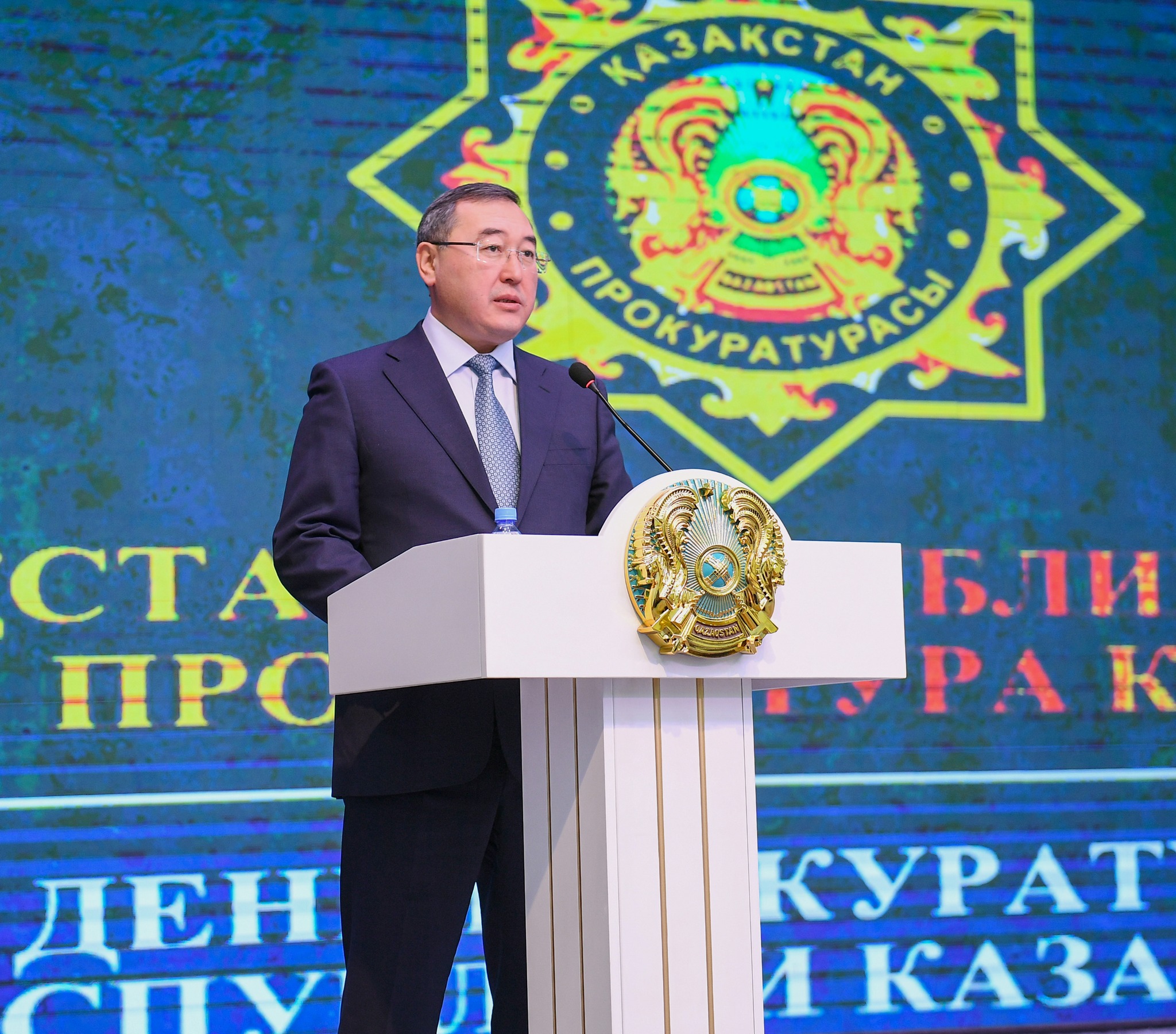 После того, как прозвучал Государственный гимн, с приветственным словом к собравшимся обратился аким Алматинской области Марат Султангазиев. В своей речи он сделал акцент на фундаментальной роли прокуратуры в правовой системе страны.