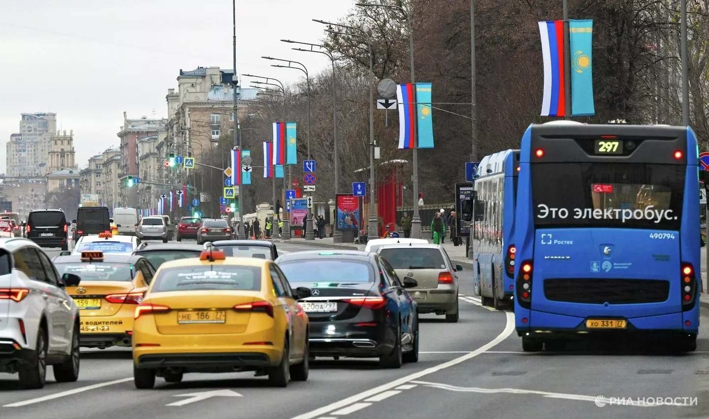 Небесно-голубые флаги Казахстана украсили улицы Москвы