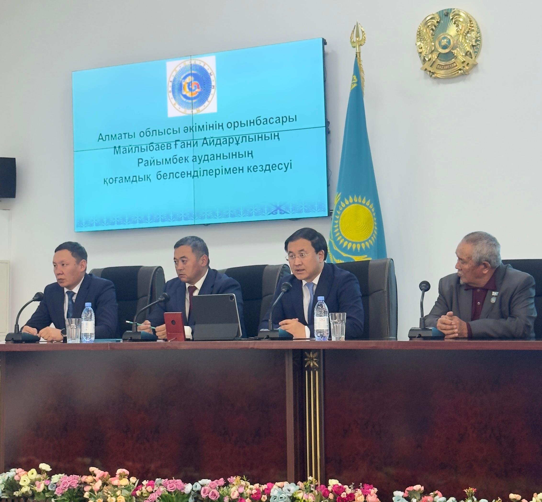Заместитель акима Алматинской области Гани Майлыбаев совершил рабочую поездку в Райымбекский район и встретился с общественными активистами. Обсуждалось то, что уже сделано в регионе, и какие вопросы требуют безотлагательного решения. В зале районного акимата собрались представители районного акимата, депутаты маслихата, председатели Общественных советов, акимы сельских округов и представители различных организаций.В начале встречи Гани Майлыбаев напомнил о целях и направлениях внутренней политики, закрепленных в недавнем Указе Президента страны. Речь шла о единстве народа, о стабильности, о р...